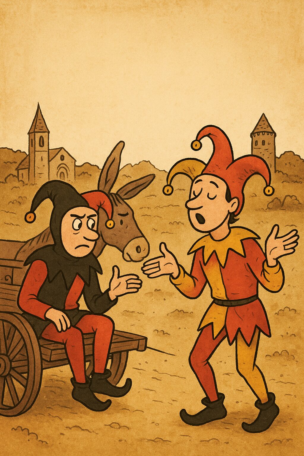 Dos joglars arriben al poble per trobar a la bèstia amb un carro que fa més soroll que sentit: un parla fins i tot dormint, l’altre no diu ni piu. L’ase no el troben pas, però s’entretenen i acaben explicant les grans llegendes catalanes que recorden… Però no n’encerten ni una. Barregen Sant Jordi amb Sant Pere de Rodes, confonen bruixes amb princeses i entre una cosa i l’altre ja no saben ni què diuen ni perquè han començat a fer-ho en primer lloc.